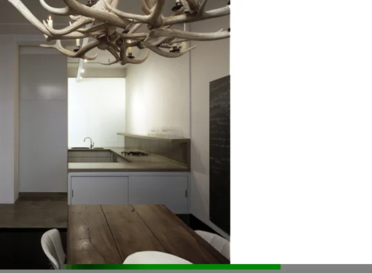 Greenwich Village Loft_ The kitchen and bathroom, separated by a plane of laminated glass, were positioned at the windowless end of this deep and narrow loft space. This configuration allows daylight to filter into the bathroom. In the evening the glowing glass wall illuminates the interior end of the loft.